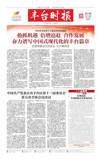 全会强调,丰台作为首都功能的拓展区、中心城区的增长带、城南行动的引领区,肩负着服务首都功能、支持中心城区、带动城南发展的重要任务和历史使命,迎来了关键的战略机遇期、高质量发展的重要窗口期。站在新征程新起点上,摆在我们面前的重要任务就是倍增追赶、合作发展,在新时代首都发展赛道上跑出“丰台速度、丰台效率、丰台质量”。