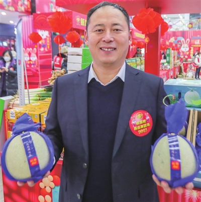 我是两天前刚刚到北京的,特意从兰考赶回来参加新发地年货节。这次年货节我们带来了两种蜜瓜和豫兰红红薯供市民选择,现在客流量越来越大了,我对未来的市场和销量很是看好。