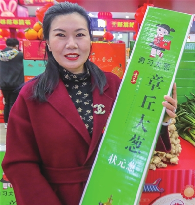 这次年货节我不仅带来了非常受欢迎的山东章丘大葱、上海大葱,还有山东莱州的姜、河南的蒜以及我们基地种植的苹果、沃柑等88种农副产品,提前半个月我就开始备货,货源非常充足,可以说是有备而来的。