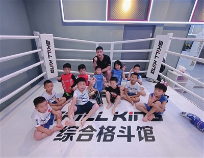 走进场馆,记者发现几个五六岁的孩子在上儿童泰拳课,孩子们在教练的指导下进行各种体能活动。韩昊天告诉记者,很多家长希望孩子们能够具备更好的身体素质,把这当作一项体育运动。当然,学员中除了学龄儿童,也有不少成人。和其他的运动不太一样,这项运动带给人很强的沉浸式体验,并且非常讲究互动性。这来源于,格斗训练中很多打靶的环节,在这家馆里不是通过和人偶或者沙袋完成的,而是和真人互动。这样的感受和跟器械互动完全不一样,会让参与者的精力更集中,情绪释放也更彻底,从而带来非常好的减压效果。这点刚好契合了很多上班族和年轻人的心理需求。与此同时,这项运动也可以帮助人们提升勇气和信心,并且学会控制自己的情绪。