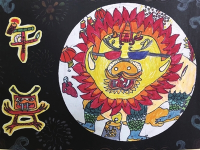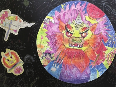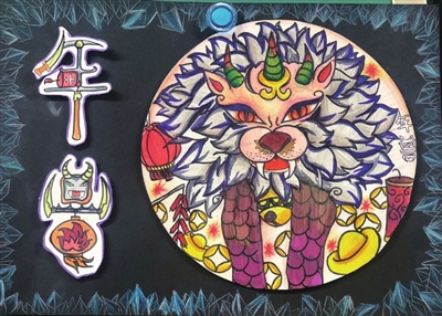 年兽又称“夕”。是古代汉族神话传说中的恶兽。在美术教学中开展主题绘画传扬我国新年传统节日习俗,开展年兽形象及字体设计内容,结合对比色与传统年画色彩在画面中的应用,运用剪贴等形式完成作品。在绘画创作中引导学员感受民族传统文化魅力。