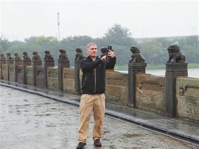 记者团一行走上这座见证历史的古桥。郑福来的孙女郑然向中外记者讲述了一家两代人的传承:“我爷爷是七七事变亲历者,退休后一直在卢沟桥担任义务讲解员。去年他离世后,我接过了这个使命,要继续把这段红色记忆传递下去。”
