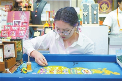 记者了解到,本次丰台展区吸引了93家企业线上线下参展,展陈展品涵盖文化科技、非遗传承、花卉产业、数字创意等多个领域,200余件特色产品与创新项目集中亮相,尽显丰台文化产业多元化发展格局。