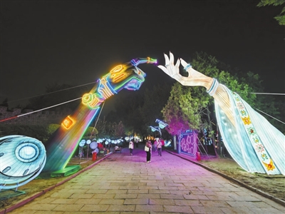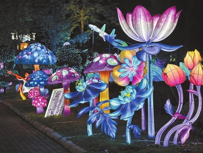 据悉,彩灯游园会以“京彩世界奇妙夜”为主题,依托世界公园特色微缩景观,创新设计狂欢之夜、浪漫欧洲、活力美洲、激情非洲、神秘亚洲、多彩大洋洲及“一带一路”七大主题展区。通过70组大型彩灯、6万余件彩灯挂件,打造出180个创意光影点,3处光影空间,构建出占地25万平方米的沉浸式灯光艺术世界。以中国非遗彩灯技艺搭载世界五大洲文明,打造了一场横跨国庆、中秋、元旦、春节等多个节庆周期的“中华彩灯宴”。