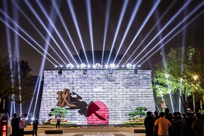 备受关注的光影秀将现场气氛推向高潮。依托宛平城西城墙,光影秀以“宛平建城”“守家卫国”“盛世生花”“城墙开放倒计时”四个篇章,生动还原历史场景。