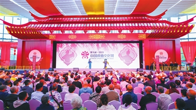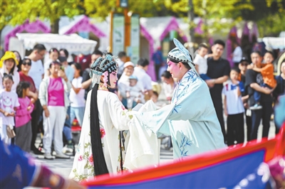 本报讯(记者 蒲长廷 姜欢)身着各式绣有精美纹样戏服的戏曲演员在舞台上集中亮相,角色姿态缤纷,韵味独特,集合成一部“戏曲百花宴”。10月5日,第九届中国戏曲文化周在北京园博园圆满落幕。7天时间里,近400场演出及配套活动精彩上演,23个剧种、33家专业院团、40余所高校社团、800余名票友共同参与,以戏为媒,让传统戏曲艺术点亮市民的现代生活。据统计,主场活动累计吸引游客超10万人次。