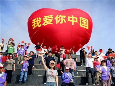 本报讯(记者 姜欢)金秋十月,国庆佳节如约而至,南苑森林湿地公园的燕景台迎来了一位“重磅嘉宾”,直径达8米的“我爱你中国”爱心形巨型气膜装置飘扬在燕景台上方,为庆祝祖国华诞增添了一抹亮丽的“中国红”,吸引了不少游客打卡纪念。