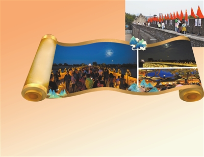 | 10月6日中秋夜,直径5米的“光影月亮”从宛平城西南城墙缓缓“升起”,还原“卢沟晓月”古画意境,银辉似的光芒给古老的卢沟桥镀上一层梦幻的色彩;不远处,圆月也从云层后探出头来。 文/记者 蒲长廷 袁阳 摄/欧阳树辰 摄/蒲长廷 |
