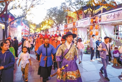 | 假期,2025“卢沟晓月”中秋文化节的NPC巡游活动开启,古代商贾、西游人物、明朝武将等角色穿梭在街巷间,为参观的游客带来一场“人在史中行”的独特文化体验。 文/记者 姜欢 |