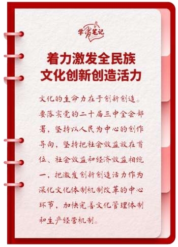 党的二十大和二十届三中全会都明确提出“激发全民族文化创新创造活力”,三中全会专门就深化文化体制机制改革作出全面部署。改革不是为了改而改,而是为了让创新创造的空间充分释放、源泉充分涌流。