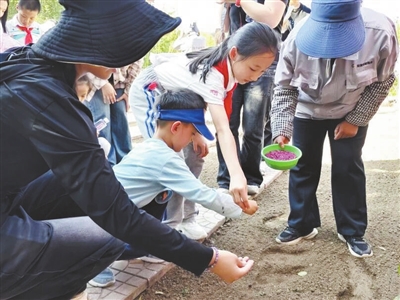 劳动实践环节是本次活动的核心。在劳动实践园里,绿化老师俯身示范菠菜、香菜和大蒜的种植步骤——撒种、覆土、压土,每一个动作都细致入微。同学们拿起工具,兴致勃勃地投入劳作。汗水浸湿衣襟,泥土沾满双手,大家在亲身实践中真切感受到了“亲手创造”的乐趣。