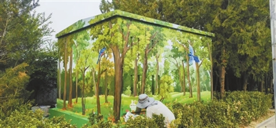 宛平城国画雄关屹立、山林油画栩栩如生、彩绘的砖墙内一只松鼠探出了头……此前,在宛平城附近,“箱体美化”的微更新正逐步开展。