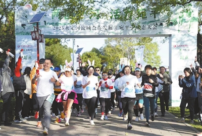 活动当日,500余名参与者从卢沟桥文化广场出发,沿晓月湖、绿堤公园、北天堂公园、紫谷伊甸园等生态节点,展开“河畔生态跑”“亲子欢乐跑”等多类型健康跑。赛道沿途设置5大补给点,集中呈现内蒙古奶制品、山西沙棘汁、河北非遗等五地特色产品,让参与者在运动中感受流域文化魅力。一名来自“学子回家 街院联盟”的高校学生表示:“一边跑步赏景,一边品尝地方风味,这样的融合体验非常新颖。”