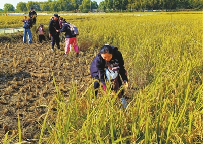 穿过分隔成块、种植着不同菜品的“一分田”,翠绿、茁壮、连绵成片的一丛丛水稻挤挤挨挨地闯入视线。稻田里,三五成群的白鹭且飞且停,闲散地掠过,仿佛绿色稻田里悦动的音符。