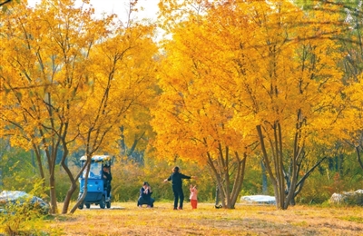 “斑斓森林”板块中,南苑森林湿地公园与天元郊野公园秋景同样绚烂。南苑森林湿地公园作为北京南中轴的重要节点,植物与鸟类资源丰富,既有以“金彩南森 生命花园”为主题的第一届南囿秋风花园季,也有森林市集、艺术打卡、摄影大赛等活动,站在观景台还可俯瞰城市景观与公园秋色。此外,天元郊野公园的大面积银杏林在秋季一片金黄,是摄影爱好者的热门打卡地。