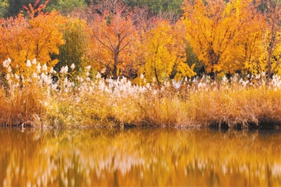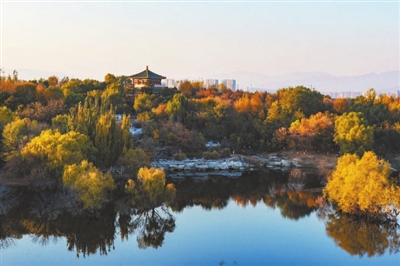 从10月下旬起,和平广场的银杏率先洒下璀璨金光;11月,元宝枫披上绚烂红衣;而常伴左右的金叶槐,则以全年不败的明亮金黄,默默守护着这份秋意。漫步湖畔,但见斑斓彩叶与静谧湖水相依,倒影成画,虚实交错间,构成一幅色彩与光影的诗意交响。