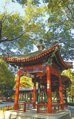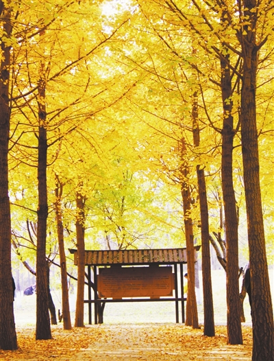 园内种植800棵银杏树,构成约3公里的金色走廊。秋季到来,园内层林尽染,丹枫如火,菊黄如金,山花流芳,姹紫嫣红,令人陶醉。枫叶红、银杏黄与园林建筑相映成趣,构成了一幅绝美画卷。