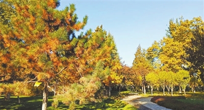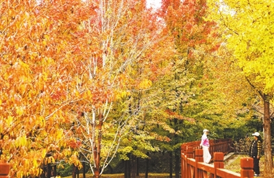 公园正被秋意晕染成一幅自然生态画卷,344株彩叶树错落分布,没刻意修剪的自然形态让游客漫步时沉浸在原生态的秋韵里。