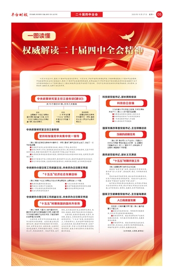 10月20日至23日,党的二十届四中全会在北京举行。10月24日,中共中央举行新闻发布会,介绍和解读党的二十届四中全会精神。中央政策研究室主任江金权表示,党的二十届四中全会最重要的成果,是审议通过了《中共中央关于制定国民经济和社会发展第十五个五年规划的建议》(以下简称《建议》)。《建议》的起草是在党中央领导下进行的。习近平总书记亲自担任文件起草组组长,亲自擘画、全程指导、把脉定向,发挥了决定性作用。