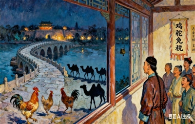 比如就住个小店,都有名目繁多的马槽钱、草料钱、喂牲口钱、水钱……就像是被蝎子蜇了一下又一下,简直贪得无厌、恶毒无比。可奇怪的是,这样一个“雁过拔毛”的地方,偏偏鸡和骆驼过卢沟桥时不用交税,卢沟桥上贩鸡的和骆驼队过往的频率可不低,他们怎么舍得放弃这块“肥肉”呢?原来,这事还得从刘墉的机敏伴驾说起。