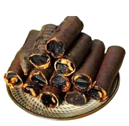 腊肠果的长度通常30~60厘米不等,直径2~3厘米。外壳较为坚硬,虽然看起来和酸角相似,但相比于指甲就能轻松捏碎的酸角,想要掰断腊肠果还是费点儿功夫的。商家们通常是直接用工具将它切成薄片,方便人们泡水饮用。