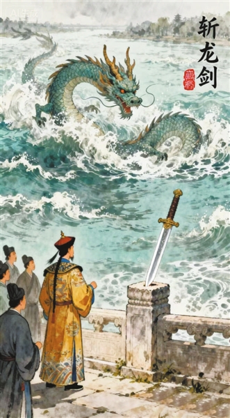 中大喜,赐宝剑为“斩龙剑”。从此,不管洪水水势多大,只要一到卢沟桥,就会缓下了,服服帖帖地流过去。