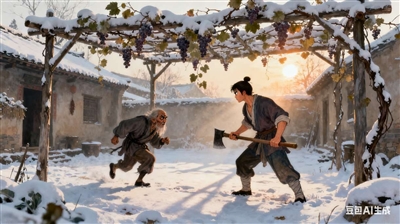 根生一下子明白了,心里忽地腾起一股怒火,于是他挥起斧头大喊一声:“恶魔,拿命来!”