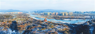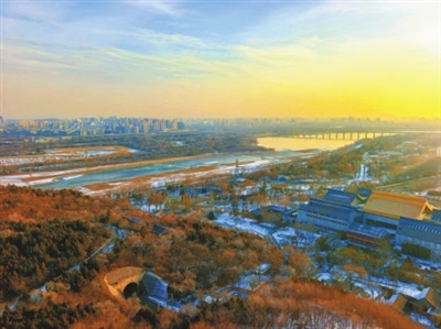 站在永定塔上远眺,永定河两岸白雪皑皑,宛如一幅水墨画。