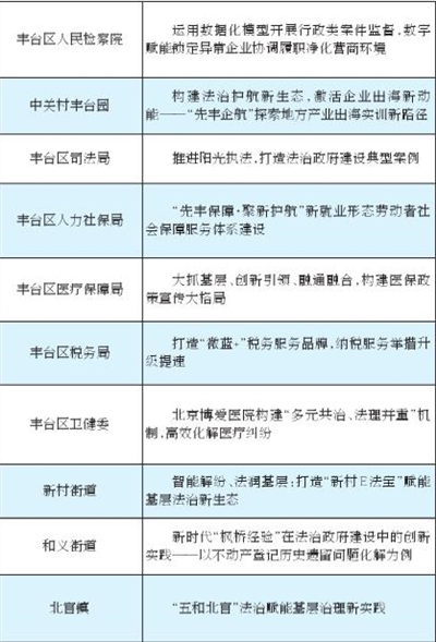 “丰台区第二批法治政府建设十大典型案例”清单如下: