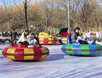 “3、2、1,出发!”冬日暖阳中,杰嘉花乐园内发出阵阵欢呼,冰面上的碰碰车瞬间开启“暴走模式”。小朋友们握紧方向盘,脚踩油门,驾驶着五颜六色的碰碰车带着爸爸妈妈在冰面“漂移”,时而急转弯避开迎面而来的“对手”,时而猛踩油门发起“突袭”。激光对战模式中,被激光击中的车子原地转三圈作为“惩罚”,碰撞声、笑声、尖叫声在冰面回荡。“冬天在冰上玩碰碰车太刺激了!冰面滑溜溜的,撞起来也不疼,带着孩子玩了3圈还不舍得下来。”杜女士带着5岁的思琪在冰上“驰骋”后笑着向记者说道。