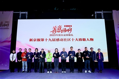 坚持无偿献血20余年,用血液的流动带来生命的希望;守护长江源30载,让垃圾成为环境“美容”的资源;从全职妈妈“变身”为无人机飞手,科技助农收获丰收的喜悦……1月28日,以“善意回响”为主题的新京报2025年度公益致敬礼在北京方庄文化艺术中心举行。现场,来自丰台区的刘智勇、李蕊及“金盲杖”公益组织获评第十九届感动社区人物、十大致敬人物及年度影响力公益案例。