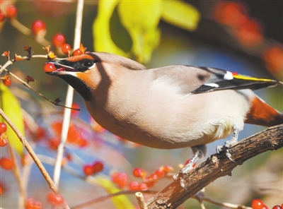 地面上,戴胜低头专注寻虫,长长的喙一探一啄,精准捕获猎物。林间的灰头绿啄木鸟正大展身手,尖锐的喙精准定位食物,发出“嗒嗒”的声响,动作利落又帅气。灰喜鹊在枝头啄食种子,锡嘴雀咬开果壳取食果仁,太平鸟扎堆享用浆果的场景也随处可见,每只鸟儿都在为过冬储备能量。