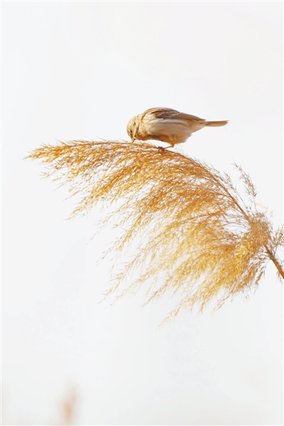 宛平湖的芦苇丛是苇鹀的乐园,它们在丛中跳跃穿梭,啄食草籽的同时,还会警惕地观察周围环境,小巧的身影在枯黄的芦苇间格外灵动。
