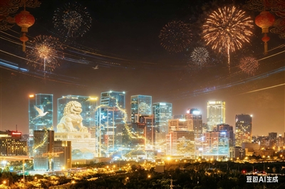 (窗外,真实的丰台夜景铺展开来:远处卢沟桥亮起灯光秀,近处丽泽的高楼灯火通明,南苑森林湿地公园的彩灯如星河,中关村丰台园的无人机编队正在排练)