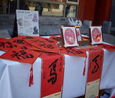 卢沟桥礼物店前,烟火气与文化味交织流淌。写福字、送福字活动吸引游客驻足体验。作为民俗体验的一部分,非遗剪纸传承人陈玉梅现场完成新作“六骏踏春”,六匹栩栩如生的马围绕着一个“春”字,既契合马年主题,又与立春节气相呼应。
