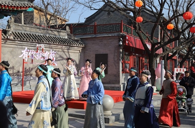 “过了小年心急火燎望眼欲穿把大年盼!”主街北侧戏台前,北京市曲剧团演员们扮相精致,热热闹闹地带来了一段《正红旗下》的选段《过年》。这部剧改编自老舍的同名自传体小说,剧中选取了小年、洗三等颇具传统韵味的民俗文化场景。主演胡优介绍道:“除此之外,在新春庙会期间,我们剧团的看家好戏《茶馆》也会在宛平城上演,这次我们打造了沉浸式演出,也就是在‘茶馆’看《茶馆》,期待与观众朋友们一起过年。”