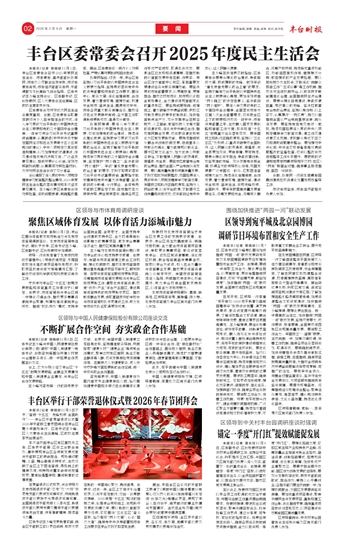 本报讯(记者 郭晓妍)2月5日,丰台区委常委会召开2025年度民主生活会。市委常委、宣传部部长孙军民,市委办公厅副主任庞学栋,市纪委常委肖飒,市委组织部部务委员、干部调配处处长高晓飞到会指导。区委书记王少峰主持会议。区委副书记、区长张艳林,区人大常委会主任高峰,区政协主席李岚参加。