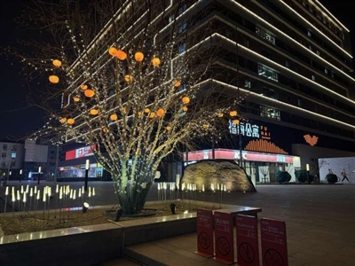 沿着丽泽金融商务区凤凰嘴街前行,只见红色灯笼、中国结与五彩灯带沿行道树次第排布,白日里的一抹红,入夜后化作流动的光影。路旁楼宇的墙面上,“马年大吉”“雪花”等灯光投影,与枝头灯影交相辉映,不少市民专程前来拍照打卡。“往年就爱来丽泽看灯光,今年布置得更有新意,灯带绕着树枝像一串串发光的糖葫芦,走在这儿就像置身新春画卷里。”李女士边说边拍。