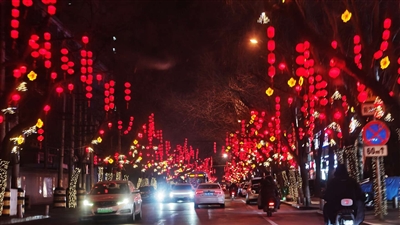 夜幕降临,丽泽金融商务区主干道两侧彩灯带缠绕枝头,盏盏红灯笼随风轻摇,将街巷勾勒得温暖而璀璨。路旁巨大的“春”字灯组格外醒目,为这座“金融之城”增添了浓浓年韵。“灯笼一挂,彩灯一亮,过年的感觉一下就来了,心里暖烘烘的,上班的疲惫都消解了不少。”正在散步的市民张先生告诉记者,自己就在附近工作,最近几天明显感觉下班路上“氛围不一样了”。