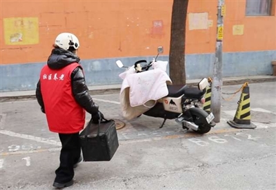 新年里,穿着红色志愿马甲的居家小管家们骑着电动车,带着满载的保温箱穿梭在社区的街巷中,把温暖与陪伴送到老人身边。