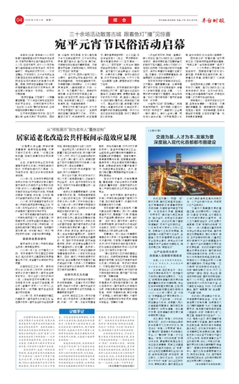 本报讯(记者 原梓峰)2026宛平新春戏曲梨园庙会的热度尚未完全退去,元宵节的脚步也悄然踏至宛平城。从3月1日到元宵节,作为2026宛平新春戏曲梨园庙会的接续活动,宛平城解锁了一种全新的过节方式——不设主舞台,不定游览线,三十余场民俗活动散落在古城的街巷院落之间,为市民游客延续热闹非凡的新春欢乐氛围。其间,市民游客循着鱼灯的光影,或是顺着此起彼伏的欢笑声走去,便能在某个转角与一场变脸、一段民乐不期而遇。