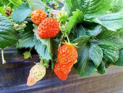 记者走进草莓大棚就闻到一种清香,眼前还有忙着授粉的蜜蜂。“这是红颜草莓,果实呈饱满心形,果色鲜红透亮,果香味浓且带着淡淡奶香。果肉细嫩多汁,甜度高且酸度适中,口感清甜爽口。”菜户营美学农场负责人告诉记者。