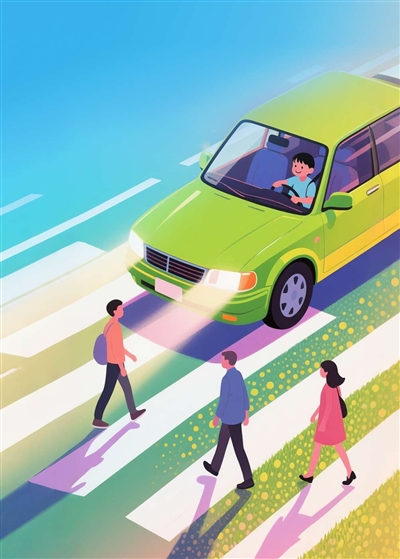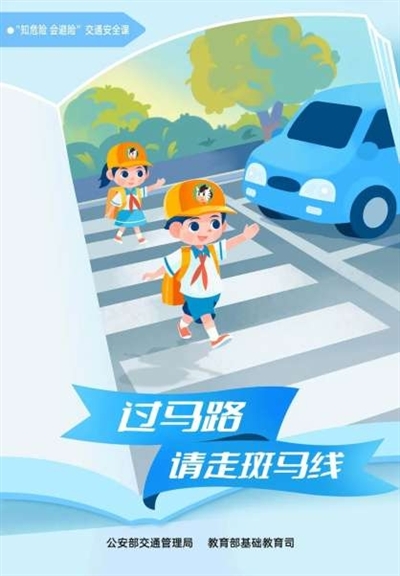 | 过马路须走斑马线 慢下脚步关注来车 伸手示意确认让行 持续观察安全通过 |