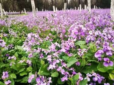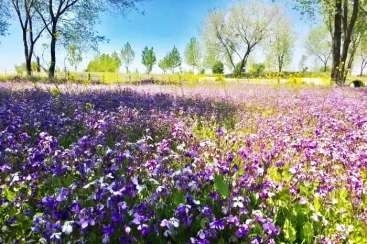 在紫谷伊甸园邂逅“梦幻紫”。二月兰从4月初便悄然绽放,一直绵延至5月中旬。细密的紫花连成无边的绒毯,风过处便漾起层层浅紫的浪,每一步踏入都像闯进了春日最缠绵的紫色梦境。