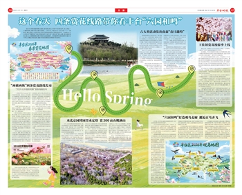 站在59米高南森燕景台远眺,春风拂过枝头,带来千树万树花开,目之所及一片春和景明,把春天的浪漫尽收眼底。3月30日,“遇见丰台·众汇京彩”——“一路繁花”春日漫游丰台创新发布活动在南苑森林湿地公园燕景台举办。活动现场,丰台区发布“两横两纵”四条赏花路线并升级打造“六园和鸣”观鸟走廊,南苑森林湿地公园、北京园博园现场推介特色活动迎接春天,王佐镇则带来首届怪村花海文化节和三条精品赏花线路,诚邀市民朋友解锁自然野趣与田园欢乐。