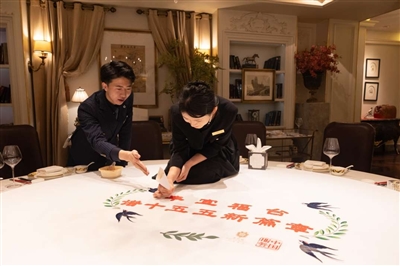 “我觉得这份工作创新性、可持续发展性都非常好。”今年春招,魏世堃入职北京宴总店,成为一名宴会定制服务师。谈起这个新职业、新岗位,他言语间透着喜悦,平时他根据宴会的主题对沙盘、口布等进行定制,安排个性化服务场景。让他印象最深的是第一次把客人的名字融入藏头诗,呈现在专属口布上时,“对方的称赞,让我至今难忘。那种在别处难以获得的仪式感与归属感,正是我们最想传递的温度。客人的笑容与感动,是对我最大的认可,也让我真切体会到自我价值的实现。”