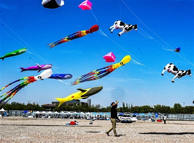 腾空的可爱“熊猫”、翻转的串形“奶牛”、摇曳的彩色巨型“章鱼”……4月11日至12日,第十四届北京国际风筝节暨第五届中国风筝锦标赛在北京园博园举办,来自国内外的15支风筝代表队同台竞技,在40000平方米的专业赛场中展开龙类中型、硬翅串类等8大竞赛项目的“长空角逐”,风筝爱好者们在开阔的场地上奔跑、牵线、仰望,亲身体验“忙趁东风放纸鸢”的春日乐趣。文/姜欢 摄/于竹茂(详见08版)
