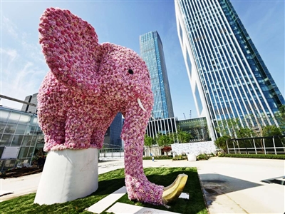 2026北京国际花展临近,早鸟票预售通道已于4月18日正式开启。记者获悉,目前花展各项筹备工作已进入冲刺阶段。在核心区室内展馆入口处,一只高达7米的粉色“花象”格外引人注目,这只“花象”通体采用35000多枝绢花精心打造,主要选用白色、粉色两大色系花材,一种是“荔枝玫瑰”,另一种则是绣球“无尽夏”,色彩层次丰富,造型灵动逼真。