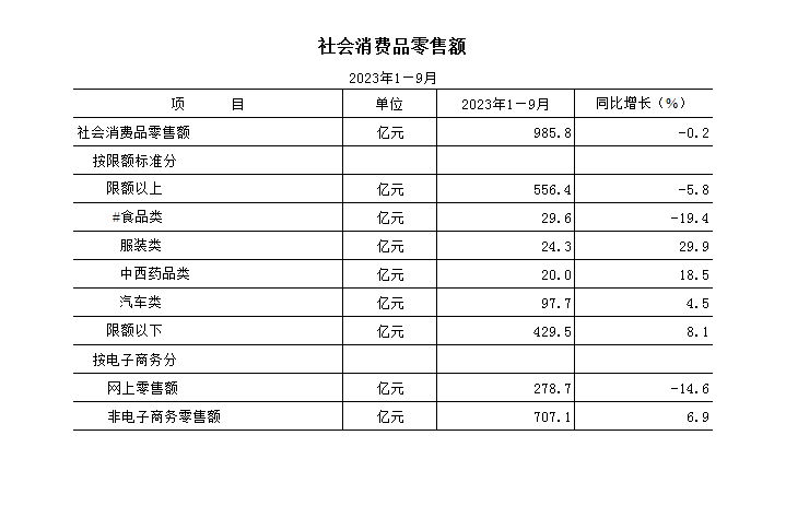 社会消费品零售额:指企业(单位、个体户)通过交易直接售给个人、社会集团用于非生产、非经营用的实物商品金额,以及提供餐饮服务所取得的收入金额。
