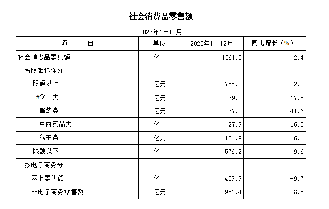 社会消费品零售额:指企业(单位、个体户)通过交易直接售给个人、社会集团用于非生产、非经营用的实物商品金额,以及提供餐饮服务所取得的收入金额。